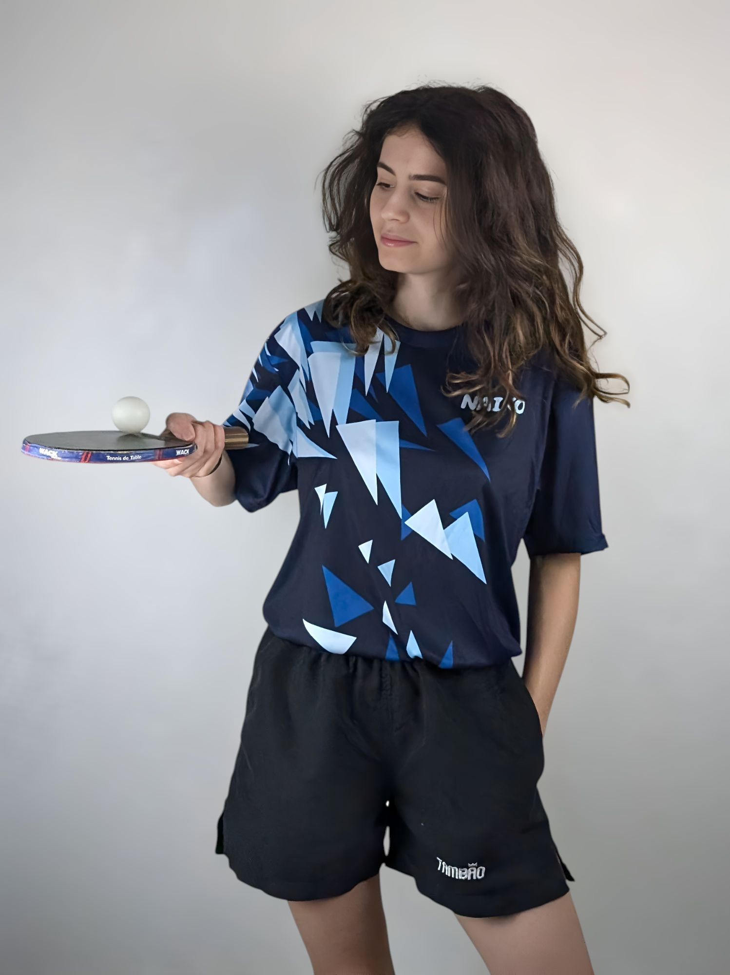 Le maillot de tennis de table Maîtrise en bleu apaisant réduit le stress tout en stimulant la concentration et la réflexion. Ses motifs triangulaires inspirent stabilité et précision, créant les conditions idéales pour jouer avec calme et contrôle.